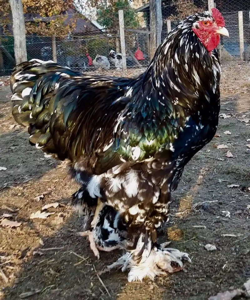 Besonders auffällig ist die üppige Fußbefiederung, die den Brahmas ihren unverwechselbaren Charme verleiht. Diese „Federstiefel“ sehen nicht nur prachtvoll aus, sondern erfordern auch regelmäßige Pflege, um Schmutz und Parasiten wie Federlinge zu vermeiden.